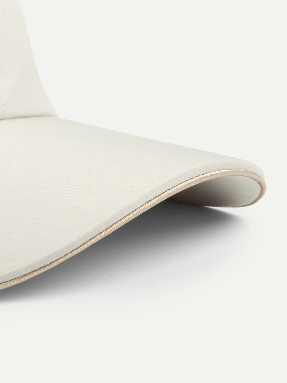 This baseball cap has been made in Italy from luxurious technical fabric. The soft matte outer shell is crafted from recycled fish nets and boasts a wind- and waterproof finish, while the interior is lined with 100% cotton for ultimate comfort. A refined detail, the signature Montacour gold satin piping around the brim. Ideal for refined leisure looks.